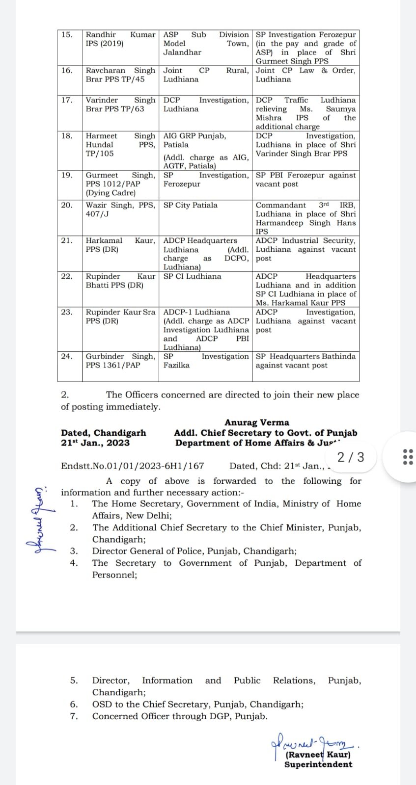 चंडीगढ़ (पंजाब दैनिक न्यूज़) जालंधर के नए पुलिस कमिश्नर होंगे IPS कुलदीप चहल,15 IPS और 9 PPS अधिकारियों के तबादलों की लिस्ट देखें