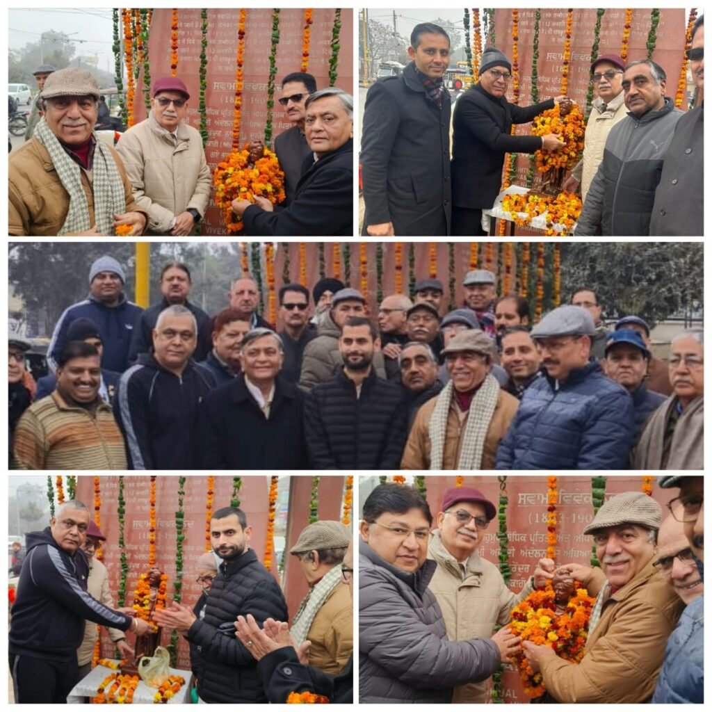 जालंधर पंजाब दैनिक न्यूज़ (मुनीष तोखी) भारत विकास परिषद् द्वारा आज स्वामी विवेकानंद जी की जयंती पर स्वामी विवेकानंद चौक में स्थापित स्वामी जी की प्रतिमा के समक्ष एक कार्यक्रम का आयोजन किया गया। कार्यक्रम का शुभारंभ वंदेमातरम् गायन से हुआ। राज कुमार चौधरी प्रांतीय महासचिव ने सभी का स्वागत किया राष्ट्रीय स्वयं सेवक संघ से नवदीप ने स्वामी जी के जीवन पर प्रकाश डाला और किस प्रकार उनके जीवन दर्शन ने समाज के लोगों पर अपना प्रभाव डाला के विषय पर विस्तार से जानकारी दी। पूर्व संसदीय सचिव के डी भंडारी ने इस अवसर पर सभी को शुभकामनाएं दी और स्वामी विवेकानंद जी के बताए मार्ग पर चलने को प्रेरित किया। महेश गुप्ता जी ने इस प्रतिमा को स्थापित करने बारे पूर्ण जानकारी दी। परिषद् के पूर्व प्रांतीय अध्यक्ष डा राजेश मन्नन ने स्वामी जी दूरदर्शिता के बारे में बताया और भारत को विश्व गुरु बनाने के स्वामी जी के प्रण को साकार करने को प्रेरित किया। पूर्व मंत्री मनोरंजन कालिया ने युवा दिवस के अवसर और अधिक युवाओं को स्वामी जी के विचारों से अवगत कराने को प्रेरित किया और अपने श्रद्धासुमन अर्पित किए। राज कुमार चौधरी ने इस प्रतिमा को और इसके चौगिरदे को और सुंदर बनाने की आवश्यकता पर बल दिया और सरकारी अधिकारियों से इस ओर ध्यान देने का निवेदन किया। इस अवसर पर पूर्व मेयर जगदीश राज राजा ने भी श्रद्धा सुमन अर्पित किए। राष्ट्र गान के साथ कार्यक्रम का समापन हुआ और सभी को लड्डू बांटे गए। इस अवसर पर सर्वेश शर्मा, रमेश विज, विवेक शर्मा, मनोज हांडा, अरुण कांत, विक्रम अरोड़ा, सतनाम अरोड़ा, शिव सोनिक, एम पी सिंह, अशोक शर्मा, डा जोगिंदर अरोड़ा, चंद्र शर्मा के एल अरोड़ा, बी बी मल्होत्रा दविंदर बजाज एन के महेंद्रु, मनोज दत्ता मुनीष,मनोहर लाल शर्मा, गुलज़ारी लाल राकेश बब्बर राज कुमार शर्मा जगमोहन मागो अश्वनी नागपाल, के एल मनचंदा,उमेश अग्रवाल, लघु उद्योग भारती से विक्रांत शर्मा और परिषद् की विभिन्न शाखाओं से बहुत से सदस्य उपस्थित थे।