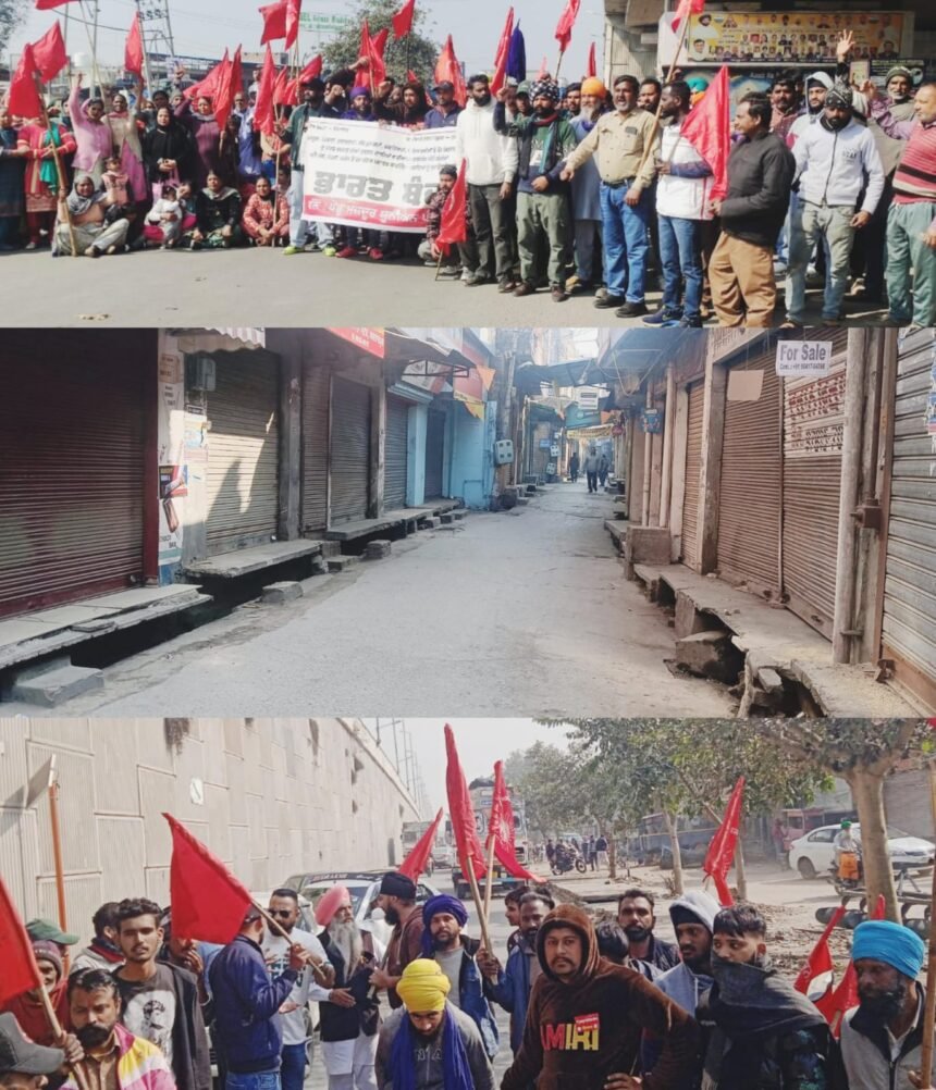 ਕਰਤਾਰਪੁਰ,16 ਫ਼ਰਵਰੀ (ਪੰਜਾਬ ਦੈਨਿਕ ਨਿਊਜ) ਪੇਂਡੂ ਤੇ ਖੇਤ ਮਜ਼ਦੂਰ ਜਥੇਬੰਦੀਆਂ ਦੀ ਅਪੀਲ ਉੱਤੇ ਅੱਜ ਕਰਤਾਰਪੁਰ ਸ਼ਹਿਰ ਦੇ ਦੁਕਾਨਦਾਰਾਂ, ਕਾਰੋਬਾਰੀਆਂ ਨੇ ਆਪਣੇ ਕਾਰੋਬਾਰ ਮੁਕੰਮਲ ਬੰਦ ਕਰਕੇ ਭਾਰਤ ਬੰਦ ਨੂੰ ਭਰਵਾਂ ਸਮਰਥਨ ਦਿੱਤਾ। ਪੇਂਡੂ ਮਜ਼ਦੂਰ ਜਥੇਬੰਦੀਆਂ ਨੇ ਸ਼ਹਿਰ ਵਿੱਚ ਮੁਜ਼ਾਹਰਾ ਕਰਦੇ ਹੋਏ ਕਰਤਾਰਪੁਰ ਦੇ ਮੁੱਖ ਚੌਂਕ ਦੇ ਚਾਰੋਂ ਰਸਤੇ ਬੰਦ ਕਰਕੇ ਸਵੇਰੇ 8 ਵਜੇ ਤੋਂ ਸ਼ਾਮ 4 ਵਜੇ ਤੱਕ ਜਾਮ ਲਗਾਇਆ। ਜਾਮ ਦੌਰਾਨ ਬਰਾਤ,ਮਰਗ, ਐਂਬੂਲੈਂਸ, ਮਰੀਜ਼, ਸਕੂਲੀ ਵਿਦਿਆਰਥੀਆਂ ਅਤੇ ਏਅਰਪੋਰਟ ਵਿਖੇ ਜਾਣ ਵਾਲੀਆਂ ਗੱਡੀਆਂ ਨੂੰ ਖੁੱਲ੍ਹ ਦਿੱਤੀ ਗਈ।ਅੱਜ ਦਾ ਭਾਰਤ ਬੰਦ ਪੇਂਡੂ ਤੇ ਖੇਤ ਮਜ਼ਦੂਰ ਜਥੇਬੰਦੀਆਂ ਵਲੋਂ ਕਿਸਾਨਾਂ , ਮਜ਼ਦੂਰਾਂ, ਦੁਕਾਨਦਾਰਾਂ, ਕੱਚੇ ਮੁਲਾਜ਼ਮਾਂ, ਡਰਾਇਵਰਾਂ ਤੇ ਵਿਦਿਆਰਥੀਆਂ ਤੇ ਹੋਰ ਮਿਹਨਤੀ ਲੋਕਾਂ ਨੂੰ ਕੁਚਲਣ ਅਤੇ ਦੇਸ਼ ਦਾ ਜਲ,ਜੰਗਲ ਅਤੇ ਜ਼ਮੀਨ ਤੇ ਹੋਰ ਖਣਿਜ ਪਦਾਰਥ ਕਾਰਪੋਰੇਟ ਘਰਾਣਿਆਂ ਦੇ ਹਵਾਲੇ ਕਰਨ ਖਿਲਾਫ਼ ਕੀਤਾ ਗਿਆ। ਇਸ ਮੌਕੇ ਆਗੂਆਂ ਨੇ ਕਿਹਾ ਕਿ ਮੋਦੀ ਸਰਕਾਰ ਵਲੋਂ ਕਾਰਪੋਰੇਟ ਘਰਾਣਿਆਂ ਪੱਖੀ ਅਤੇ ਲੋਕ ਵਿਰੋਧੀ ਫਾਸ਼ੀਵਾਦੀ ਨੀਤੀਆਂ ਲਾਗੂ ਕੀਤੀਆਂ ਜਾ ਰਹੀਆਂ ਹਨ। ਲੋਕਾਂ ਨੂੰ ਆਪਸ ਵਿੱਚ ਧਰਮਾਂ, ਜਾਤਾਂ ਦੇ ਨਾਂ ‘ਤੇ ਪਾੜ ਕੇ ਲੜਾਇਆ ਜਾ ਰਿਹਾ ਹੈ ਅਤੇ ਲੋਕਾਂ ਦੀ ਜ਼ਿੰਦਗੀ ਦੇ ਬੁਨਿਆਦੀ ਮੁੱਦਿਆਂ ਨੂੰ ਘੱਟੇ ਰੋਲਿਆ ਜਾ ਰਿਹਾ ਹੈ।ਸੰਯੁਕਤ ਕਿਸਾਨ ਮੋਰਚਾ, ਕੇਂਦਰੀ ਟ੍ਰੇਡ ਯੂਨੀਅਨਾਂ, ਪੇਂਡੂ ਤੇ ਖੇਤ ਮਜ਼ਦੂਰ ਜਥੇਬੰਦੀਆਂ ਆਦਿ ਵਲੋਂ ਦੇਸ਼ ਦੇ ਲੋਕਾਂ ਦੀ ਜ਼ਿੰਦਗੀ ਦੇ ਤਮਾਮ ਬੁਨਿਆਦੀ ਮੁੱਦਿਆਂ ਨੂੰ ਲੈ ਕੇ ਵਿਸ਼ਾਲ ਏਕਾ ਉਸਾਰਨ ਅਤੇ ਵਿਸ਼ਾਲ ਲਾਮਬੰਦੀ ਲਈ ਭਾਰਤ ਬੰਦ ਕੀਤਾ ਗਿਆ।ਇਸ ਮੌਕੇ ਮੰਗ ਕੀਤੀ ਗਈ ਕਿ ਲੇਬਰ ਕੋਡ ਰੱਦ ਕੀਤੇ ਜਾਣ, 12 ਘੰਟੇ ਦੀ ਦਿਹਾੜੀ ਦਾ ਫ਼ੈਸਲਾ ਰੱਦ ਕੀਤਾ ਜਾਵੇ, ਮਗਨਰੇਗਾ ਤਹਿਤ ਸਾਲ ਭਰ ਰੁਜ਼ਗਾਰ ਦੇਣ ਦੀ ਗਾਰੰਟੀ ਤੇ ਦਿਹਾੜੀ 700 ਰੂਪਏ ਕੀਤੀ ਜਾਵੇ,ਸਮੁੱਚੇ ਕਰਜ਼ੇ ਮੁਆਫ਼ ਕੀਤੇ ਜਾਣ ਅਤੇ ਜਨਤਕ ਵੰਡ ਪ੍ਰਣਾਲੀ ਤਹਿਤ ਰਸੋਈ ਵਿੱਚ ਵਰਤੋਂ ਦੀਆਂ ਸਾਰੀਆਂ ਵਸਤਾਂ ਕੰਟਰੋਲ ਰੇਟ ‘ਤੇ ਦਿੱਤੀਆਂ ਜਾਣ, ਕੱਚੇ ਕਾਮੇ ਪੱਕੇ ਕੀਤੇ ਜਾਣ ਅਤੇ ਕਿਸਾਨਾਂ ਨੂੰ ਉਹਨਾਂ ਦੀਆਂ ਫ਼ਸਲਾਂ ਦੀ ਐੱਮ ਐੱਸ ਪੀ ਦਾ ਕਾਨੂੰਨੀ ਹੱਕ ਦਿੱਤਾ ਜਾਵੇ।ਇਸ ਮੌਕੇ ਪੇਂਡੂ ਮਜ਼ਦੂਰ ਯੂਨੀਅਨ ਪੰਜਾਬ ਦੇ ਸੂਬਾ ਪ੍ਰੈੱਸ ਸਕੱਤਰ ਕਸ਼ਮੀਰ ਸਿੰਘ ਘੁੱਗਸ਼ੋਰ, ਤਹਿਸੀਲ ਆਗੂ ਕੇ ਐੱਸ ਅਟਵਾਲ, ਬਲਵਿੰਦਰ ਕੌਰ ਦਿਆਲਪੁਰ, ਬਲਬੀਰ ਸਿੰਘ ਧੀਰਪੁਰ, ਪੰਜਾਬ ਖੇਤ ਮਜ਼ਦੂਰ ਸਭਾ ਦੇ ਆਗੂ ਵੀਰ ਕੁਮਾਰ, ਆਸ਼ਾ ਵਰਕਰ ਅਤੇ ਫੈਸਿਲੀਟੇਟਰ ਵਰਕਰ ਯੂਨੀਅਨ ਦੀ ਆਗੂ ਅੰਮ੍ਰਿਤਪਾਲ ਕੌਰ ਨੂਸੀ ਅਤੇ ਆਂਗਣਵਾੜੀ ਵਰਕਰ ਹੈਲਪਰ ਯੂਨੀਅਨ ਪੰਜਾਬ (ਸੀਟੂ)ਦੀ ਆਗੂ ਜਸਵੀਰ ਕੌਰ,ਆਸ਼ਾ ਰਾਣੀ,ਡਾਕਟਰ ਅੰਬੇਡਕਰ ਸੰਘਰਸ਼ ਮੋਰਚਾ ਦੇ ਆਗੂ ਤਰਲੋਕ ਵੈਂਡਲ ਅਤੇ ਇਸਤਰੀ ਜਾਗ੍ਰਿਤੀ ਮੰਚ ਦੀ ਆਗੂ ਬਲਵਿੰਦਰ ਕੌਰ ਅਤੇ ਦਲਜੀਤ ਕੌਰ ਆਦਿ ਨੇ ਸੰਬੋਧਨ ਕੀਤਾ।