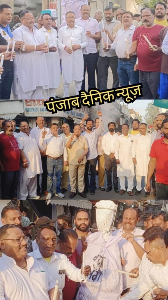जालंधर छावनी पंजाब दैनिक न्यूज़ (मुनीष तोखी) जम्मू-कश्मीर के पहलगाम में हुए आतंकी हमले के विरोध में भाजपा कार्यकर्ताओं ने कैंडल मार्च निकाला और आतंकवाद का पुतला भी फूंका।जालंधर छावनी में श्रीनगर पहलगाम में गत दिन पाकिस्तानी आतंकवादियों द्वारा बेकसूर लोगों पर किए गए हमले को लेकर भारी रोष व्यक्त करते हुए कैंडल मार्च निकाला गया और पाकिस्तान का पुतला भी फूंका गया। इस कैंडल मार्च में कैट के सभी वर्ग के लोगों ने भाग लिया जिसकी अध्यक्षता पूर्व उपाध्यक्ष हरविंदर सिंह पप्पू ने की, भाजपा मंडल 17 के प्रधान सागर जॉर्ज सहित उपस्थित सभी लोगों ने जमकर पाकिस्तान मुदाबांद के नारे लगाए और मोदी सरकार से अपील की कि वह इस शर्मनाक हमले की कठोर जवाबी कार्रवाई करें जिससे दोबारा ऐसा हमला करने की कोई कल्पना भी ना करें, पूरा देश इस समय बेहद गुस्से में नजर आ रहा है। कैंडल मार्च लोकल बस स्टैंड से शुरू होकर कैंट के सदर बाजार में संपन्न हुआ जहां पर पाकिस्तान का पुतला फूंका गया। इस मौके पर सिविल सदस्य पुनीत शुक्ला, प्रधान राज कुमार राजू, शिव दर्शन, दविंदर कुमार, अनिल हंस, मनीष कुमार, हनी सहोता, राकेश अटवाल, पंडित रोशन लाल, कमल चौहान, लाडी सरवटे, अजय पीवाल, अनिल चौहान, सुरिंदर शुभ, नवीन, तरसेम चौधरी, सोनू, मुनीश बक्शी, करण आदि उपस्थित थे।