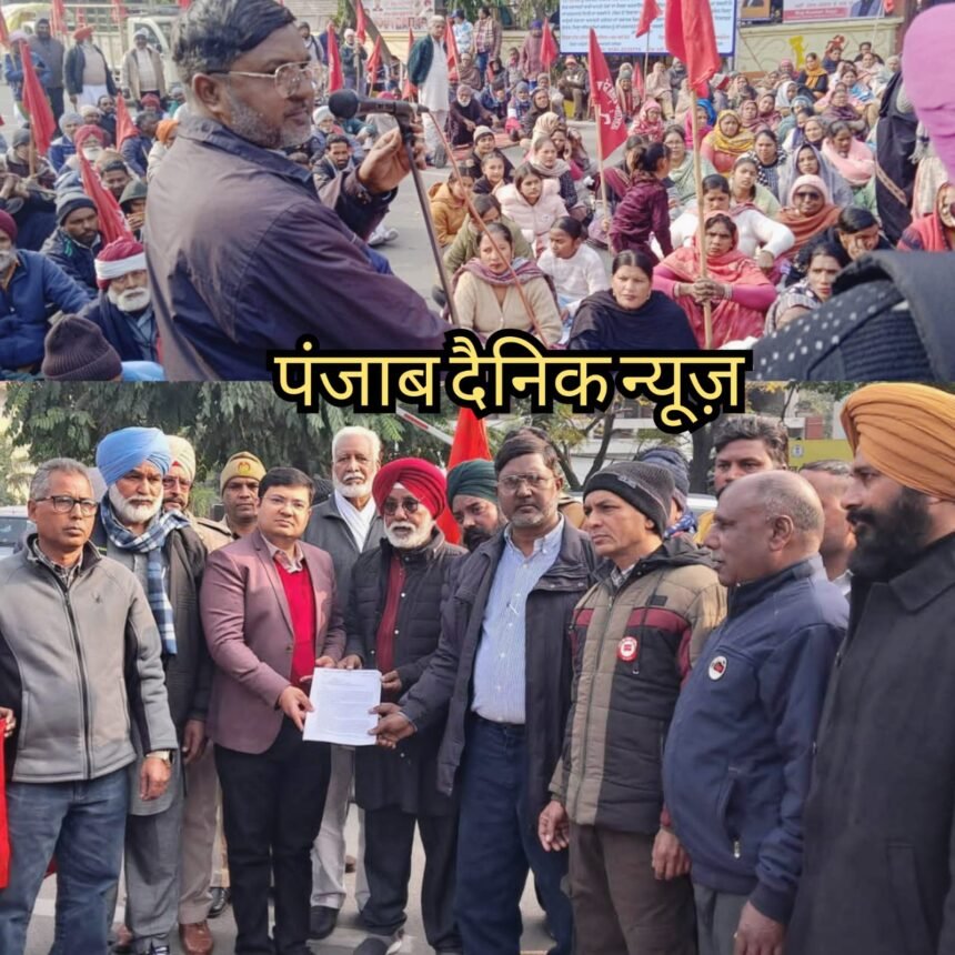 ਜਲੰਧਰ 6 ਜਨਵਰੀ ਪੰਜਾਬ ਦੈਨਿਕ ਨਿਊਜ਼ (ਮੁਨੀਸ਼ ਤੋਖੀ) ਪੇਂਡੂ ਤੇ ਖੇਤ ਮਜ਼ਦੂਰ ਜਥੇਬੰਦੀਆਂ ਦੇ ਸਾਂਝੇ ਮੋਰਚੇ ਦੇ ਸੱਦੇ ਉੱਤੇ ਅੱਜ ਇਥੇ ਡੀਸੀ ਦਫ਼ਤਰ ਅੱਗੇ ਧਰਨਾ ਲਾਕੇ, ਮਜ਼ਦੂਰ ਜਥੇਬੰਦੀਆਂ ਨੇ ਕੇਂਦਰ ਦੀ ਮੋਦੀ ਸਰਕਾਰ ਅਤੇ ਪੰਜਾਬ ਦੀ ਭਗਵੰਤ ਮਾਨ ਸਰਕਾਰ ਨੂੰ ਮਜ਼ਦੂਰ ਵਿਰੋਧੀ ਦੱਸਦਿਆਂ ਸਾਰੇ ਮਜ਼ਦੂਰ ਵਿਰੋਧੀ ਕਾਨੂੰਨ ਰੱਦ ਕਰਨ ਅਤੇ ਮਜ਼ਦੂਰਾਂ ਦੀਆਂ ਹੱਕੀ ਮੰਗਾਂ ਪ੍ਰਵਾਨ ਕਰਨ ਦੀ ਮੰਗ ਕੀਤੀ ਗਈ।ਧਰਨੇ ਨੂੰ ਪੇਂਡੂ ਮਜ਼ਦੂਰ ਯੂਨੀਅਨ ਪੰਜਾਬ ਦੇ ਸੂਬਾ ਪ੍ਰਧਾਨ ਤਰਸੇਮ ਪੀਟਰ,ਦਿਹਾਤੀ ਮਜ਼ਦੂਰ ਸਭਾ ਦੇ ਸੂਬਾ ਪ੍ਰਧਾਨ ਦਰਸ਼ਨ ਨਾਹਰ, ਪੰਜਾਬ ਖੇਤ ਮਜ਼ਦੂਰ ਯੂਨੀਅਨ ਦੇ ਸੂਬਾ ਵਿੱਤ ਸਕੱਤਰ ਹਰਮੇਸ਼ ਮਾਲੜੀ,ਪੰਜਾਬ ਖੇਤ ਮਜ਼ਦੂਰ ਸਭਾ ਦੇ ਵੀਰ ਕੁਮਾਰ ਅਤੇ ਕੁਲ ਹਿੰਦ ਖੇਤ ਮਜ਼ਦੂਰ ਯੂਨੀਅਨ ਦੇ ਸੋਢੀ ਰਾਮ ਉੱਪਲ ਨੇ ਸੰਬੋਧਨ ਕਰਦਿਆਂ ਕਿਹਾ ਕਿ ਸਮਾਜ ਦੇ ਸਭ ਤੋਂ ਦੱਬੇ ਕੁੱਚਲੇ ਲੋਕਾਂ ਦੀ ਮੰਦੀ ਹਾਲਤ ਦਾ ਕਾਰਨ ਮਨੁਵਾਦੀ ਵਿਚਾਰਧਾਰਾ ਹੈ, ਜਾਤ ਪਾਤੀ ਵਿਤਕਰਾ ਅਤੇ ਜਾਇਦਾਦ ਤੋਂ ਵਾਂਝੇ ਕੀਤੇ ਇਹ ਲੋਕ ਸਦੀਆਂ ਤੋਂ ਸਮਾਜਿਕ ਕਾਣੀ ਵੰਡ ਦਾ ਸ਼ਿਕਾਰ ਹਨ, ਉਹਨਾਂ ਕਿਹਾ ਕਿ ਹੁਣ ਮਨਰੇਗਾ ਰਾਹੀਂ ਮਿਲਦੇ ਨਿਗੂਣੇ ਰੁਜਗਾਰ ਨੂੰ ਖੋਹਕੇ ਅਤੇ ਚਾਰ ਲੇਬਰ ਕੋਡ ਲਾਗੂ ਕਰਕੇ ਕੇਂਦਰ ਸਰਕਾਰ ਨੇ ਉਸੇ ਮਨੁਵਾਦੀ ਸੋਚ ਦਾ ਪ੍ਰਗਟਾਵਾ ਕੀਤਾ ਹੈ।