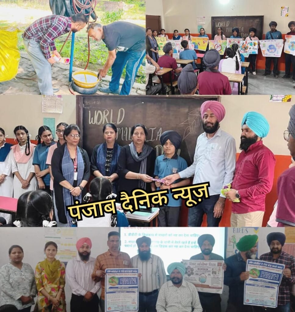 ਇਸੇ ਤਹਿਤ ਜੀ.ਐਨ.ਪੀ.ਕੇ ਸਕੂਲ ਨਡਾਲਾ ਵਿਖੇ ਸਿਹਤ ਵਿਭਾਗ ਦੀ ਟੀਮ ਵੱਲੋਂ ਵਿਸ਼ਵ ਮਲੇਰੀਆ ਦਿਵਸ ਮਨਾਇਆ ਗਿਆ। ਇਸ ਮੌਕੇ ਸਿਹਤ ਸੁਪਰਵਾਈਜ਼ਰ ਜਸਵਿੰਦਰ ਸਿੰਘ ਨੇ ਸਮੂਹ ਵਿਦਿਆਰਥੀਆਂ ਨੂੰ ਮਲੇਰੀਆ ਦੇ ਲੱਛਣਾਂ ਅਤੇ ਰੋਕਥਾਮ ਸਬੰਧੀ ਵਿਸਥਾਰ ਨਾਲ ਜਾਣੂ ਕਰਾਇਆ। ਇਸ ਦੌਰਾਨ ਐਸ.ਆਈ ਜਸਵਿੰਦਰ ਸਿੰਘ ਨੇ ਸਭ ਤੋਂ ਪਹਿਲਾਂ ਮਲੇਰੀਆ ਜਾਗਰੂਕਤਾ ਮੁਹਿੰਮ ਵਿੱਚ ਆਪਣਾ ਸਹਿਯੋਗ ਦੇਣ ਲਈ ਸਮੂਹ ਵਿਦਿਆਰਥੀਆਂ ਅਤੇ ਸਕੂਲ ਦੇ ਅਧਿਆਪਕਾਂ ਦਾ ਤਹਿ ਦਿੱਲੋਂ ਧੰਨਵਾਦ ਕੀਤਾ। ਉਨ੍ਹਾਂ ਹੋਰ ਜਾਣਕਾਰੀ ਦਿੰਦਿਆਂ ਕਿਹਾ ਕਿ ਸਾਨੂੰ ਆਪਣੇ ਘਰਾਂ ਦੇ ਆਲੇ ਦੁਆਲੇ ਸਾਫ ਪਾਣੀ ਖੜ੍ਹਾ ਨਹੀਂ ਹੋਣ ਦੇਣਾ ਚਾਹੀਦਾ ਅਤੇ ਸਾਫ ਸਫਾਈ ਦਾ ਵੀ ਖਾਸ ਧਿਆਨ ਰੱਖਣਾ ਚਾਹੀਦਾ ਹੈ। ਮੱਛਰ ਤੋਂ ਬਚਣ ਲਈ ਮੱਛਰਦਾਨੀ ਅਤੇ ਮੱਛਰ ਭਜਾਓ ਕਰੀਮਾਂ ਦੀ ਵਰਤੋਂ ਕਰਨੀ ਚਾਹੀਦੀ ਹੈ। ਇਸ ਦੌਰਾਨ ਵਿਦਿਆਰਥੀਆਂ ਵੱਲੋਂ ਮਲੇਰੀਆ ਜਾਗਰੂਕਤਾ ਸੰਬੰਧੀ ਤਸਵੀਰਾਂ ਵੀ ਬਣਾਈਆਂ ਗਈਆਂ।