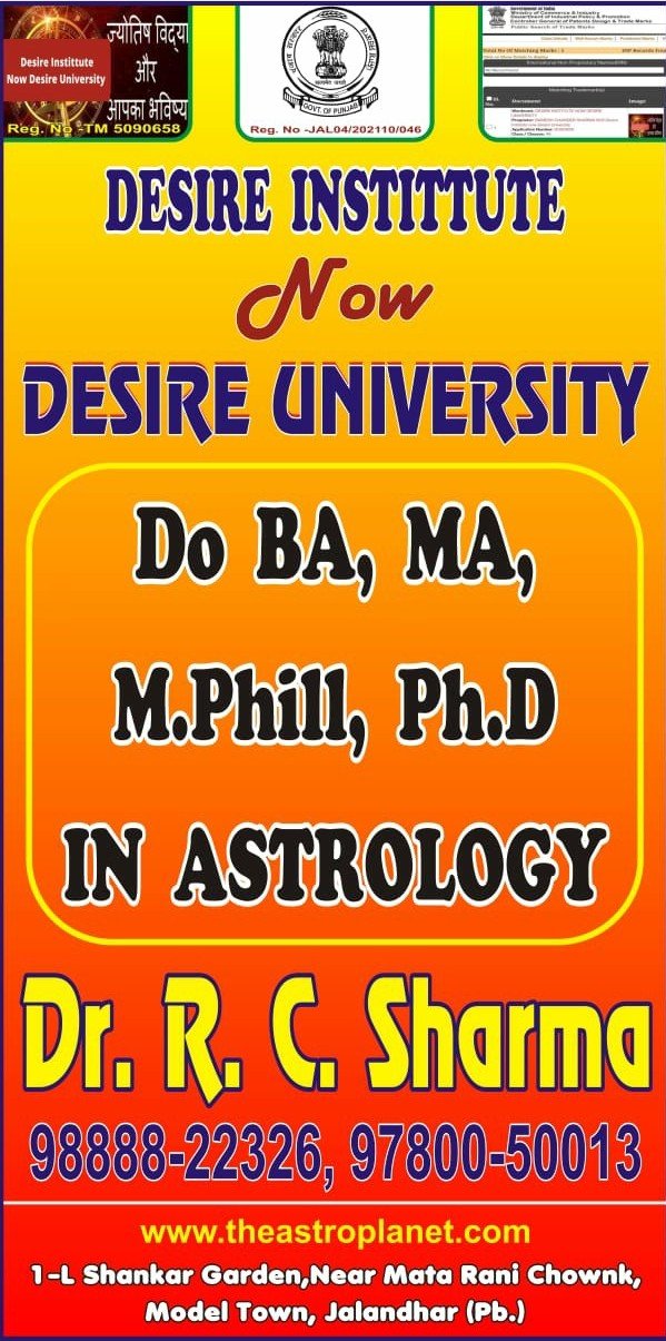 Do B.A.MA.M PHILL AND PhD in astrology with DESIRE INSTITTUTE NOW DESIRE UNIVERSITY jalandhar
