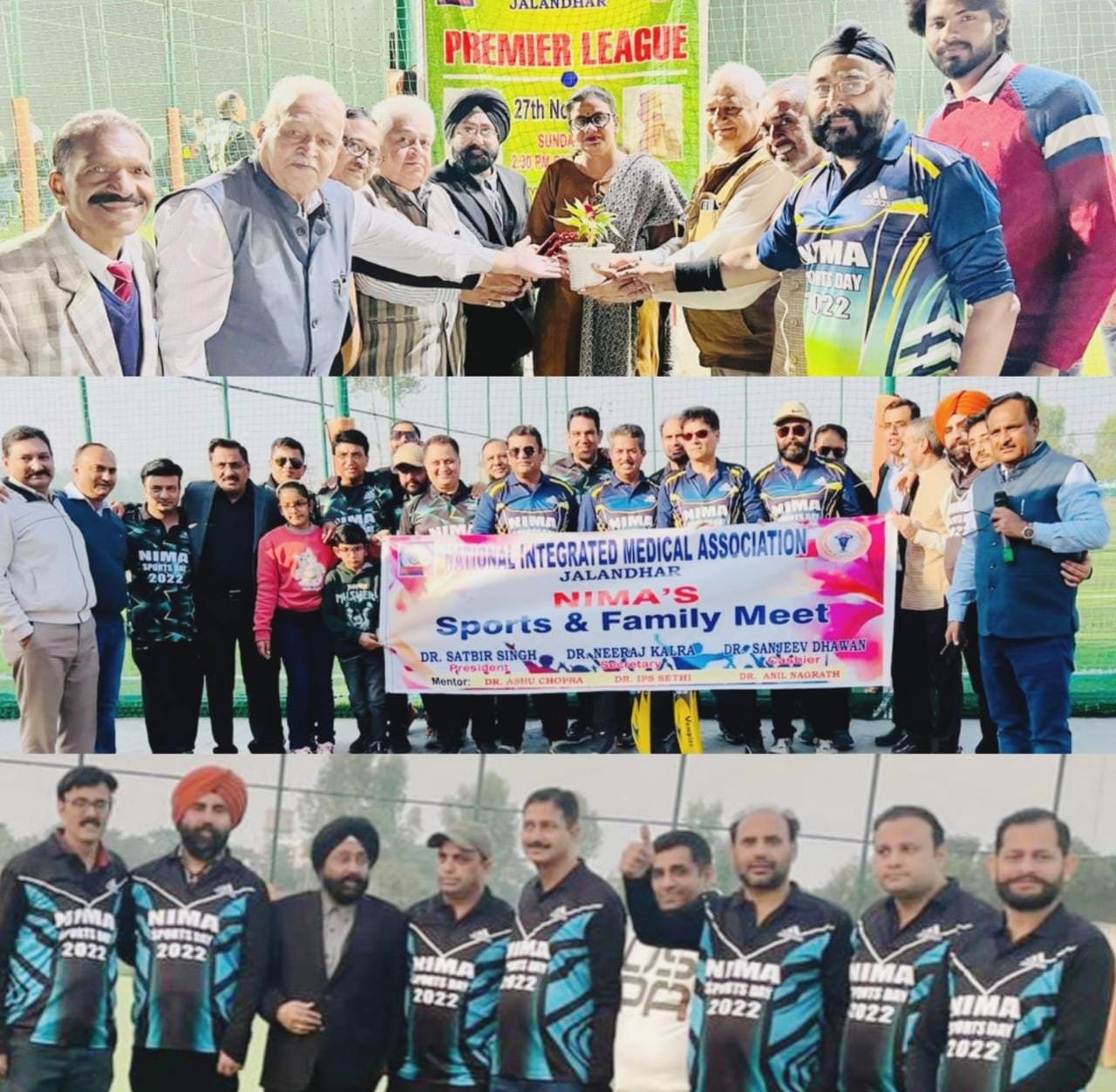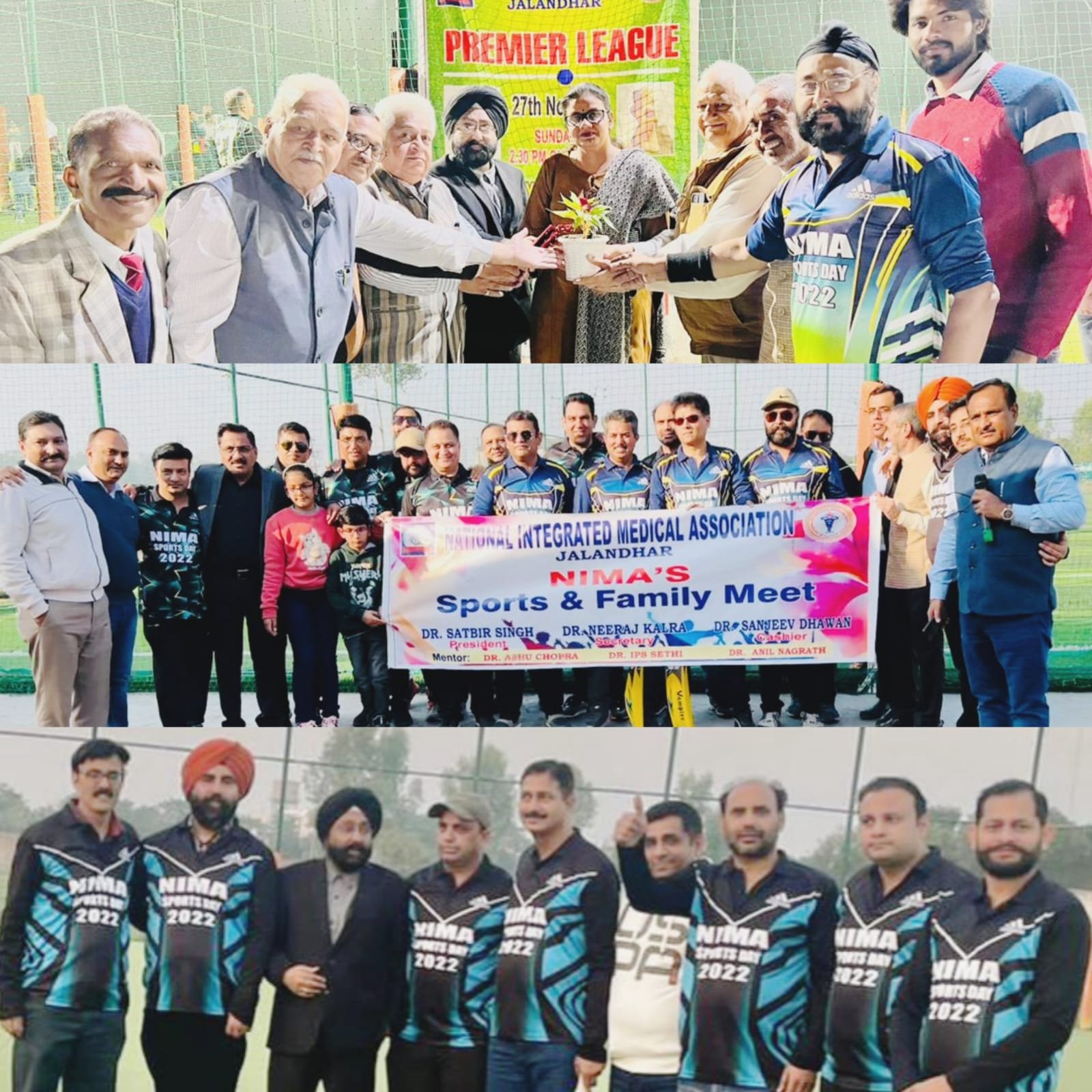 जालंधर पंजाब दैनिक न्यूज़ (मुनीश तोखी) नैशनल इंटिग्रेटिड मैडिकल एसोसिएशन (नीमा) की ओर से वार्षिक स्पोर्टस डे का आयोजन प्रधान डा. सतबीर सिंह की अध्यक्षता में स्थानीय पॉवर प्ले अकादमी में किया गया, जिसमें एसोसिएशन के सदस्यों के क्रिकेट व फुटबाल मैच खेले गए तथा फीमेल फोरम की सदस्याओं के तंबोला व कैरम बोर्ड मैच हुए। इसके अलावा सभी ने विभिन्न फन गेम्स का भी मजा लिया व डी.जे. की मस्ती में झूमते हुए खूब ठुमके लगाए।इस दौरान पहला क्रिकेट मैच प्रैसीडेंट- 8 व सचिव-8 टीमों के मध्य खेला गया, जिसमें सचिव-8 की टीम ने मैच जीता व डा. दीपक ‘मैन आफ द मैच’ बने, दूसरा मैच प्रैजीडैंट-8 व कैशियर-8 के मध्य हुआ, जिसमें प्रैजीडैंट-8 टीम जीती व डा. पवन सिकरी’ मैन ऑफ द मैच’ बने, तीसरा मैच कैशियर-8 व सचिव-8 के बीच हुआ, जिसमें कैशियर-8 की टीम जीती व डा. हिमांशू बजाज ‘मैन ऑफ द मैच’ बने, इसके बाद प्रैजीडैंट व सचिव टीमों के मध्य फाइनल मैच खेला गया, जिसमें प्रैजीडैंट टीम ने बाजी मारी और डा. सुमित कपाही ‘मैन ऑफ मैच’ बने तथा डा. पवन सिकरी ‘मैन ऑफ द सीरीज’ रहे। इसके साथ ही डा. साहिल भारद्वाज ने ‘बैस्ट बॉलर’ व डा. एस. एस. घोत्रा ने ‘बैस्ट क्षेत्ररक्षक’ का खिताब जीता। इसके अतिरिक्त हुए फुटबाल मैच में डा. भजन खेपड़ा व डा. सुरिन्द्र कल्याण की टीमों ने बाजी मारी।सभी मैचों में पूर्व प्रधान डा. अनिल नागरथ ने अपने खास अंदाज में कमेंट्री की। इस अवसर पर नीमा के प्रदेशाध्यक्ष डा. परविन्द्र बजाज, प्रदेश सचिव डा. आई.पी. सिंह सेठी, डा. एस.पी. सिंह सेठी, डा. के.एस. राणा, डा. सतीश शर्मा, दिनेश जग्गी,डा. आशू चोपड़ा,डा.नीरज कालड़ा, डा.ललित चावला,डा.जसलीन सेठी,डा. विपुल कक्कड़,डा. जतिन्द्र प्रभाकर,डा.शशि भूषण, रमिन्द्र कौर,डा.संजीव धवन मौजूद थे।